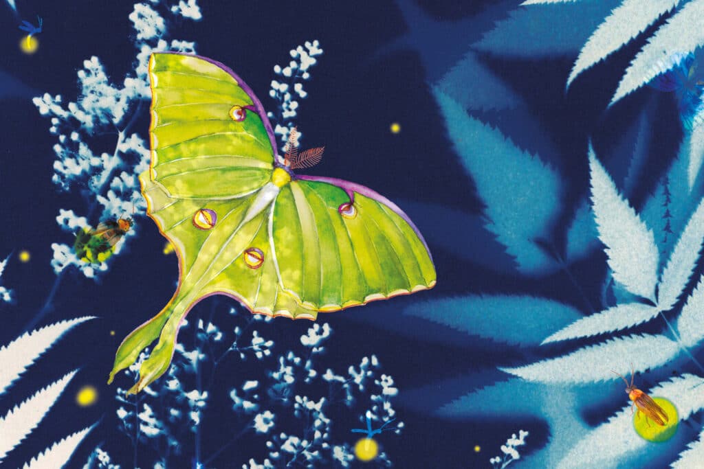 Prenez un bain de nature dans cette exposition lumineuse. Une première section regroupe des cyanotypes originaux de fleurs et de plantes, réalisés en plein nature l’été. Plongez dans les couleurs séduisantes de ce procédé d’impression photographique monochrome ancien. Une deuxième section réunit des assemblages numériques d’illustrations d’insectes et de plantes peintes à l’aquarelle.
