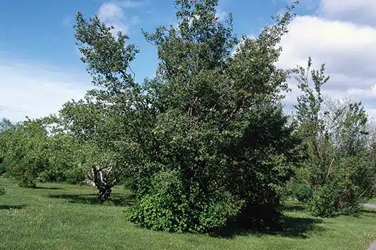 Accueil Outil d'aide à la sélection d'arbres Amélanchier à feuilles d'aulne Amélanchier à feuilles d’aulne Amelanchier alnifolia Famille : Rosaceae Feuillu Essence indigène Caractéristiques Fruits comestibles : Fruits sucrés et juteux de couleur bleu-violet Taille à maturité : 5 m Largeur à maturité : 3 m Vitesse de croissance : Moyenne Ensoleillement : Mi-ombre, Ombre, Soleil, Texture du sol : Argile, Limon, Sable, Tolérance à la sécheresse : Moyenne Disponibilité en centres de jardin : Rarement disponible Arbres qui pourraient vous intéresser Poirier commun Pyrus communis Pommier Liberty Malus domestica (Liberty) Pommetier Malus X (Harvest Gold 'Hargozam') Pommetier Malus X (Adirondack) Amélanchier à grandes fleurs Amelanchier x grandiflora Pommier de Sibérie Malus baccata