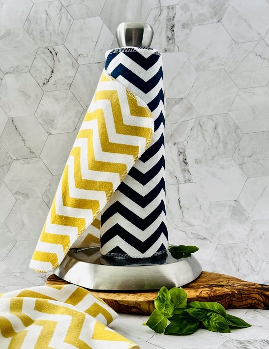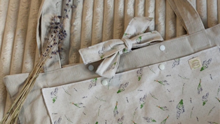 Produits : Essuie-mains à suspendre, sous-plats pour micro-ondes, napperons avec pochette pour couverts, serviettes pour cheveux, sacs magiques (froid/chaud), sacs pour bouteille de vin et protège-vêtements pour adultes
