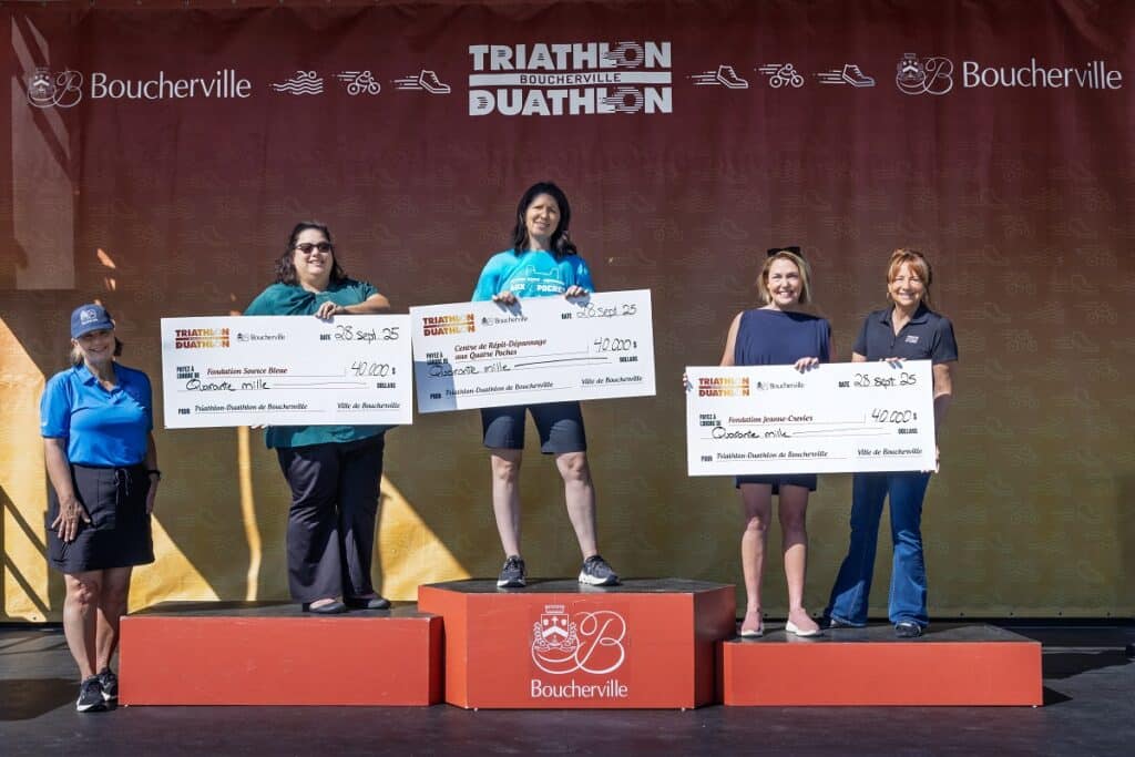 En plus des performances sportives, c’est également l’impact social et communautaire de l’événement qui mérite d’être souligné. Fidèle à sa mission de redonner à la communauté, l’événement a permis de remettre la somme record de 120 000 $, répartie à parts égales entre le Centre de Répit-Dépannage Aux Quatre Poches, la Fondation Source Bleue et la Fondation Jeanne-Crevier, des organismes humanitaires essentiels à Boucherville. Ce montant s’ajoute aux 529 000 $ déjà remis depuis les débuts de l’événement en 2016, portant le total des dons remis à 649 000 $.