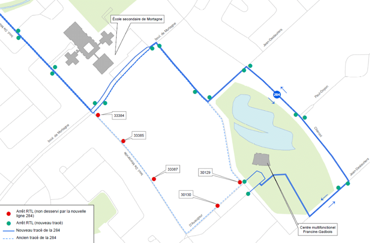 La Ville de Boucherville tient à informer les citoyens que le trajet de la ligne 284 (midibus) a été modifié le 25 août dernier afin de mieux desservir les résidences situées aux abords de la rue Charcot.